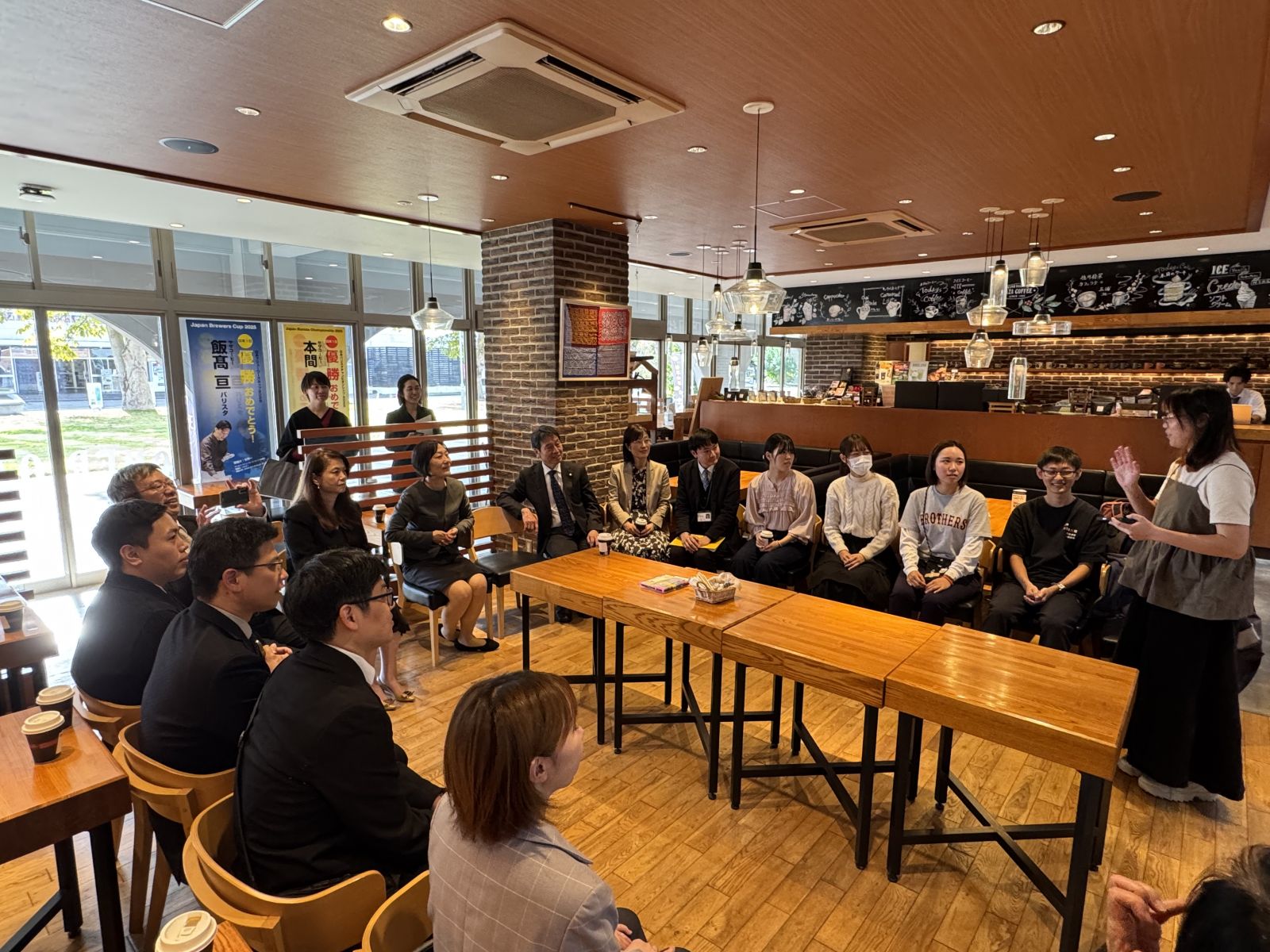 午餐會後的座談由茨城大學特聘顧問葉千瑋教授主持,雙方教授就不同科系領域合作、短期學生研修、夏季營等議題深入交流。特別的是,茨城大學於活動中安排曾參加本校夏令營的日本學生,以及目前就讀於茨城大學的臺灣留學生進行分享,學生回顧在本校的學習經驗與跨文化交流收穫,現場氣氛熱烈,充分展現兩校長期交流的厚實基礎。